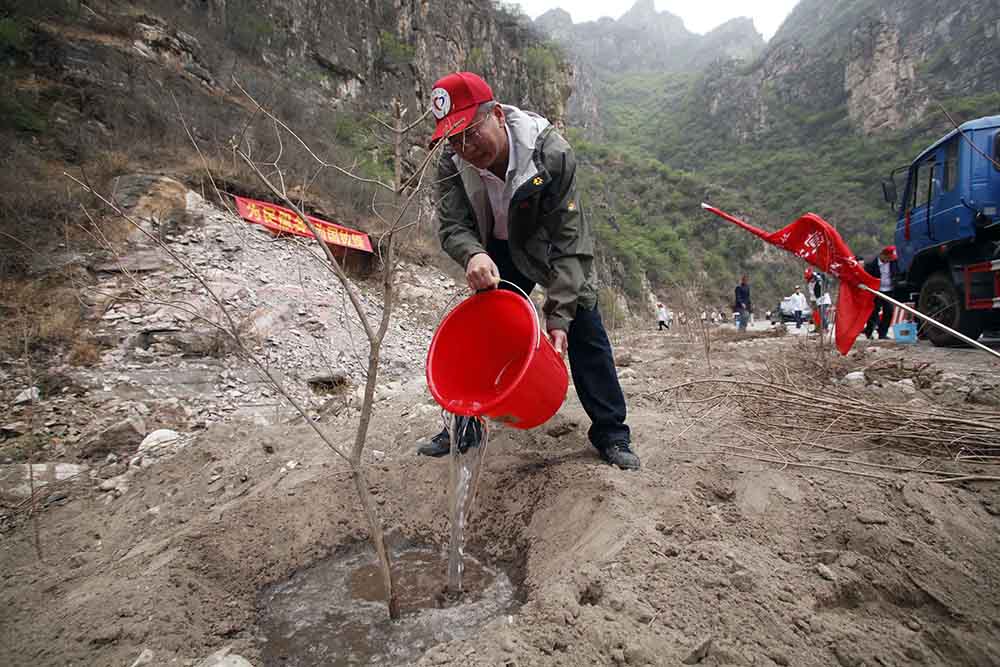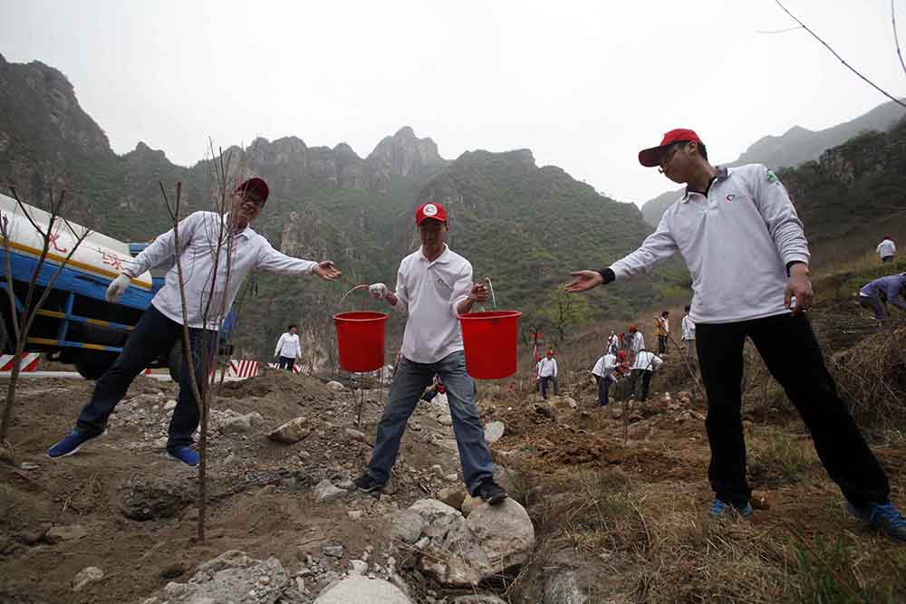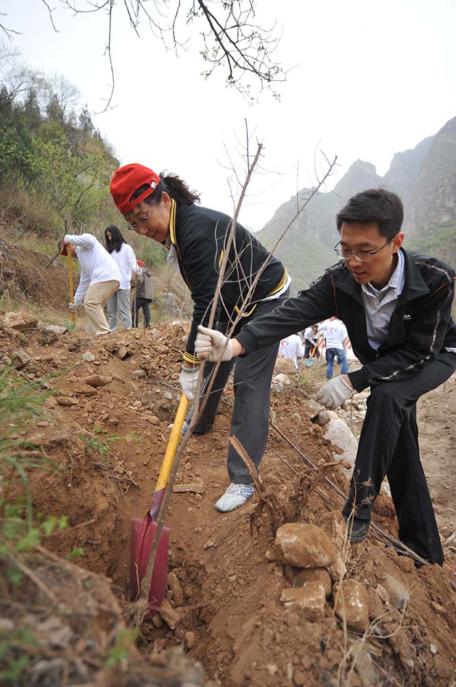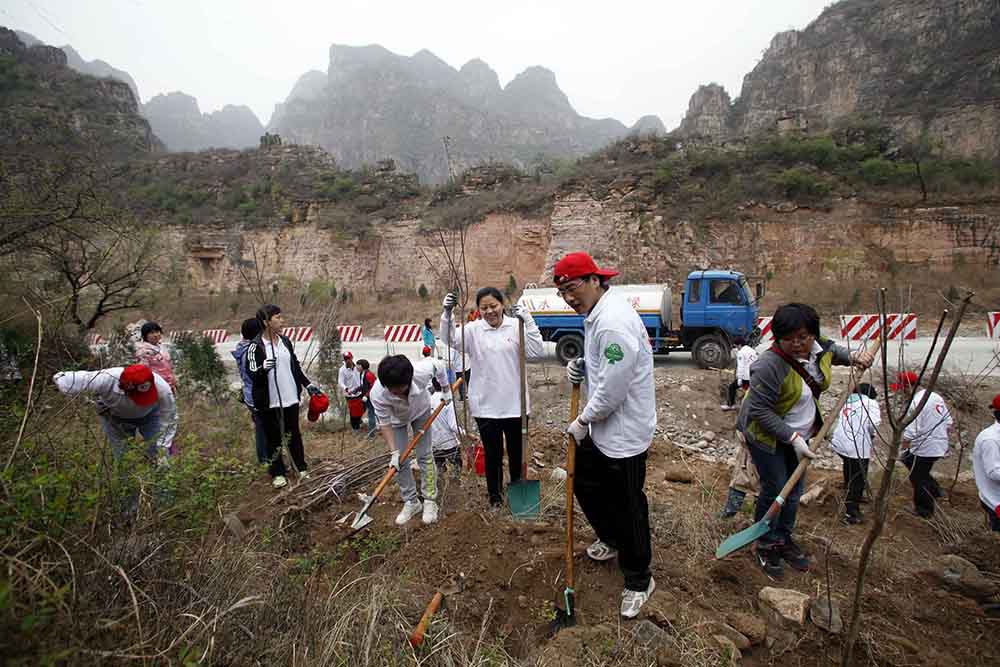 每个人心中都有一份梦想,还山以碧绿、还水以清澈、还天空以蔚蓝,我们每一个人都对绿色充满了希望。面对着日益恶化的环境,我们不得不为我们的家园担忧!因此,4月10日,由300多名共铸中国心志愿者组成的红二团来到“共铸中国心同心林”十渡植树基地进行义务植树活动。